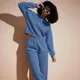 Dark Blue Polyester Fleece Oversized Sweatshirt With Joggers For Women